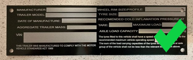You can find your trailer’s ATM on the compliance plate, which is usually located on the drawbar at the front of the trailer. If you’re not sure whether your trailer needs one, send me a photo of the compliance plate and I’ll let you know. A online rego check does NOT show the ATM! Please look on the compliance plate only.